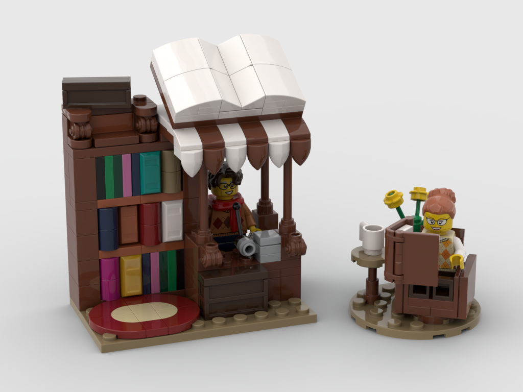 Introducing the Market Books Stand – a cozy corner for book lovers and market enthusiasts alike. This charming MOC captures the bustling vibe of a quaint book stall, complete with detailed shelves and a variety of miniature books to browse through. Perfect for adding a lively touch to your marketplace.