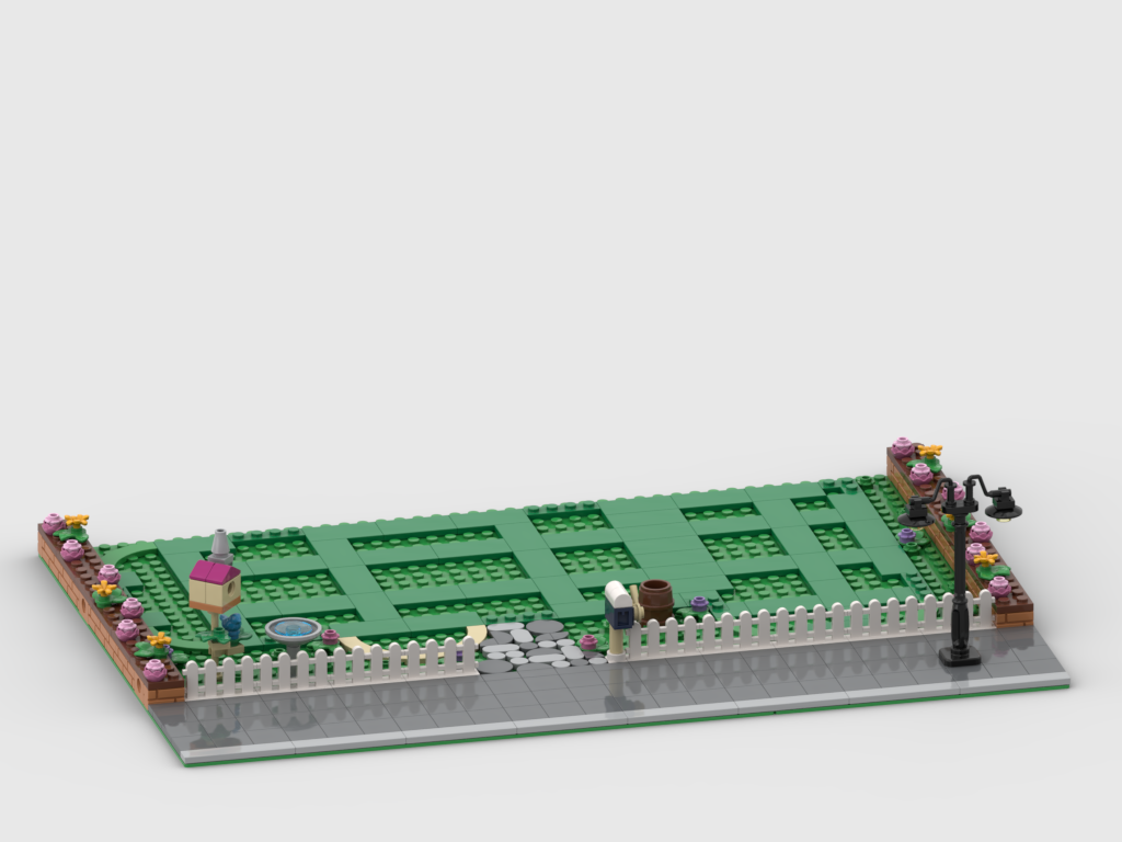 Step into a sunlit spring morning with this beautifully crafted display for LEGO set 42669. Centered on a lush, green baseplate, a charming white picket fence frames a carefully planted flower border—pink roses and yellow daisies sprigs bustle with color, inviting busy little pollinators to call this garden home.