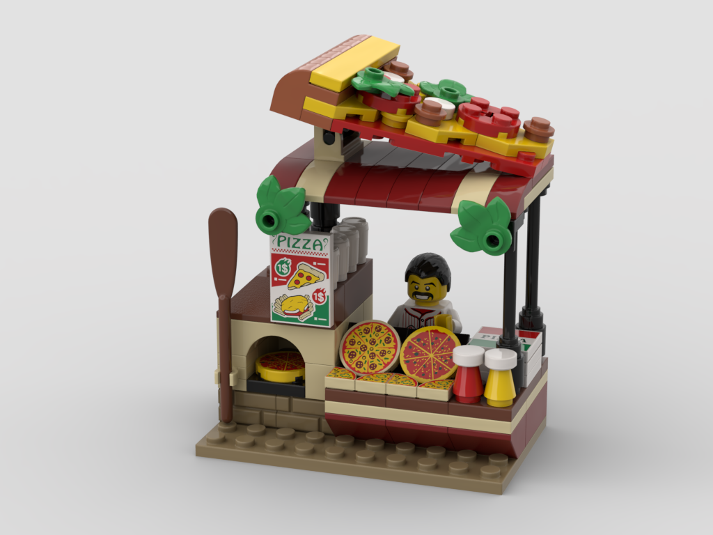 MOC - Modular Urban Food Area + 3 stand + 1 cart
