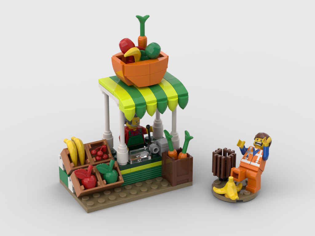 Introducing the Vegetable Stand: A charming, rustic market stall filled with fresh produce and vibrant colors! This MOC captures the essence of a bustling farmer's market, featuring neatly displayed fruits, vegetables, and a welcoming vendor’s area. Whether it’s part of a village scene or a standalone creation, this build adds a touch of life and authenticity to any city.