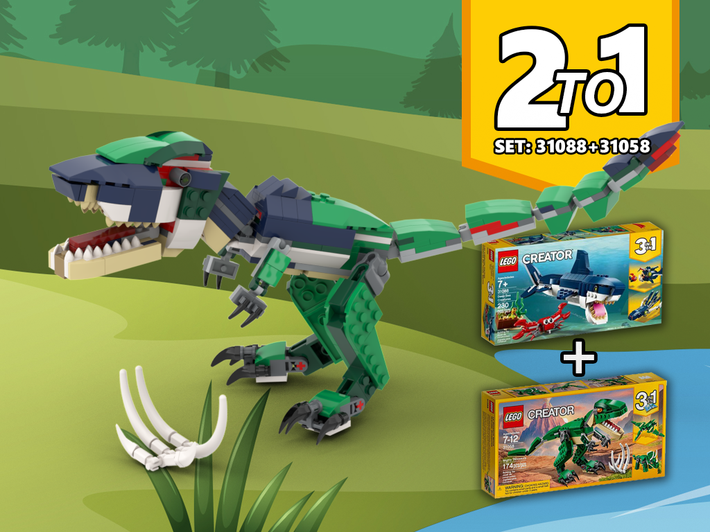 I took the set 31088 + 31058 and upgraded them to a bigger T-rex with more teeth :)